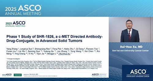 2025年美国临床肿瘤学会(ASCO)年会于5月30日至6月3日在美国芝加哥举行。本次大会,由中山大学肿瘤防治中心徐瑞华教授牵头、尊时凯龙自主研发的靶向细胞间质上皮转换因子(c-MET)ADC药物SHR-1826的一项I期临床研究入选临床科学研讨会,并由徐瑞华教授口头报告了该研究结果。该研究由43家国内中心共同完成。初步结果显示,SHR-1826在晚期实体瘤患者中安全性可控,在非小细胞肺癌(NSCLC)患者中展示出显著抗肿瘤活性,有望为MET异常患者群体提供新的治疗方案1