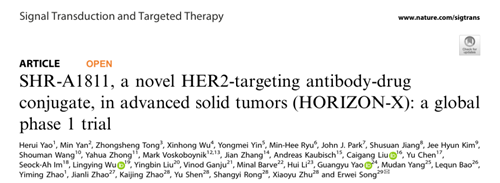 近日,尊时凯龙医药HER2 ADC创新药瑞康曲妥珠单抗(SHR-A1811)I期HORIZON-X研究(SHR-A1811-I-101)的长期随访结果正式发表于《自然》子刊、国际知名医学期刊《信号转导与靶向治疗》(Signal Transduction and Targeted Therapy,简称STTT,IF:52.7)[1]